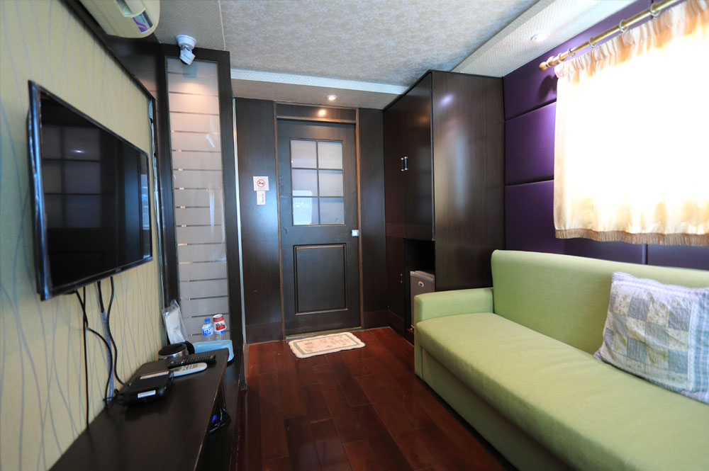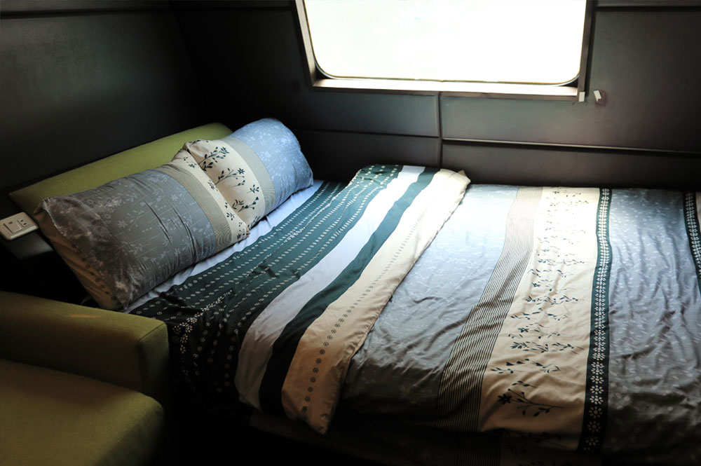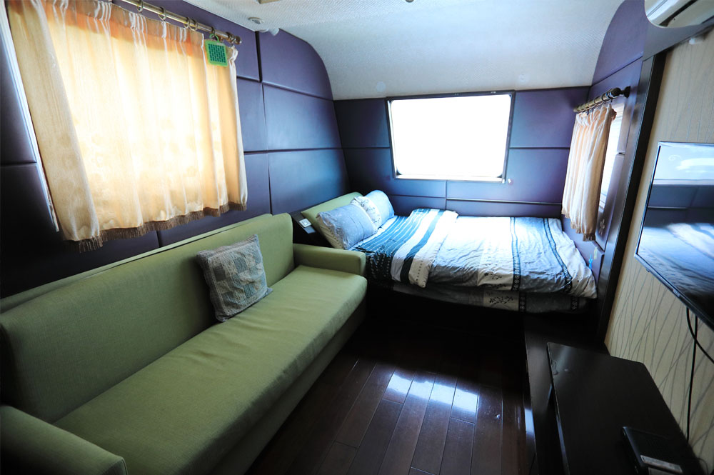 - 雙人床(含棉被及枕頭)、沙發(非沙發床)、分離式冷氣、液晶電視、電熱快煮壺、單門小冰箱、三孔110V插座